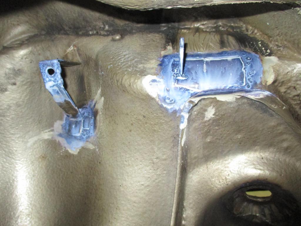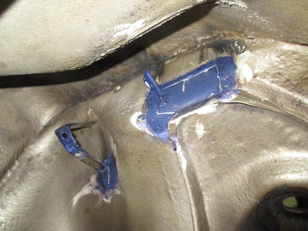 Das Saugrohr wurde äußerlich gereinigt. Glasperlstrahlen wollte ich nicht. Das sieht dann zu übertrieben aus. Außerdem gab es Teile von CP und Bremsleitungsgedöns. Schließlich habe ich Rostumwandler auf die geschweißten Stellen im Radkasten aufgetragen. Da gab es ja noch im Bereich der Verstärkung Anrostungen. Das Zeug soll überlackierbar sein.