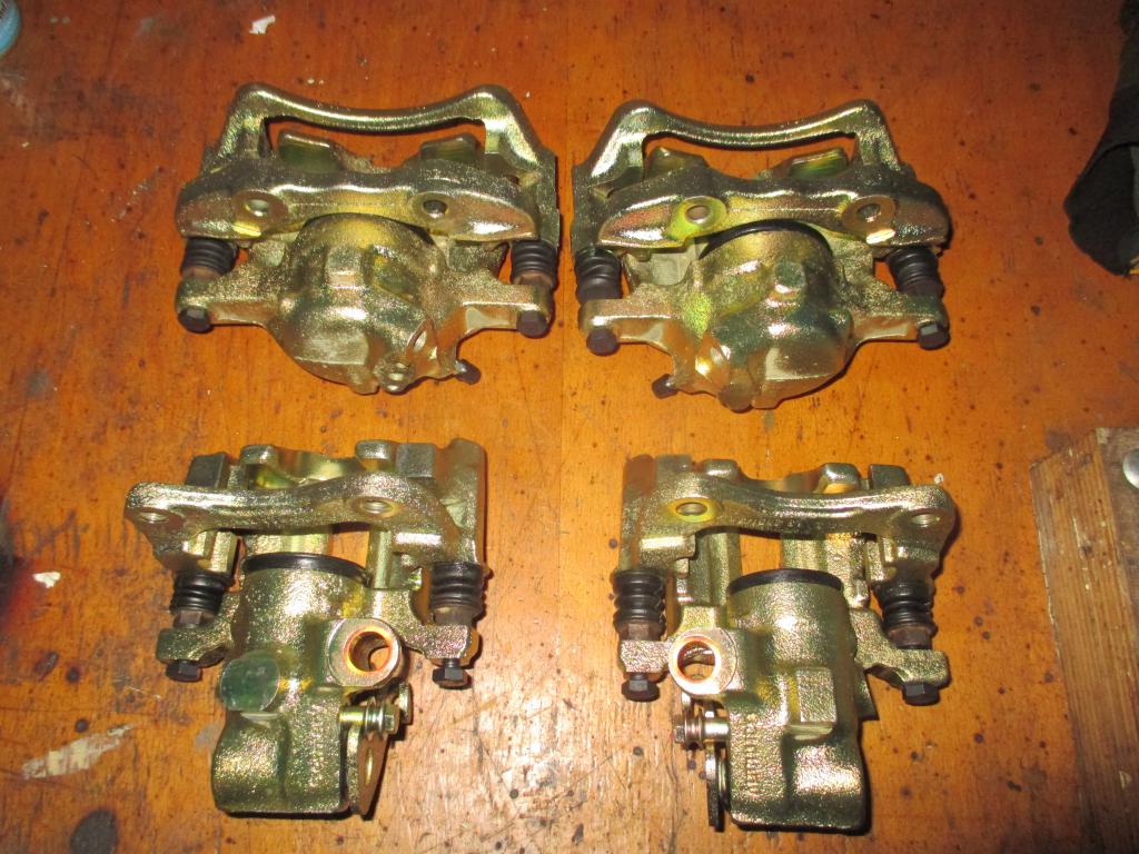 Ich habe einen kompletten Überholsatz für jeweils vorne und hinten über E-bay beschafft. Die Gummibälge von den Führungsbolzen sind ziemlich "unflexibel". Kein tolles Material. Die alten waren soweit in Ordnung und werden aufgehoben.