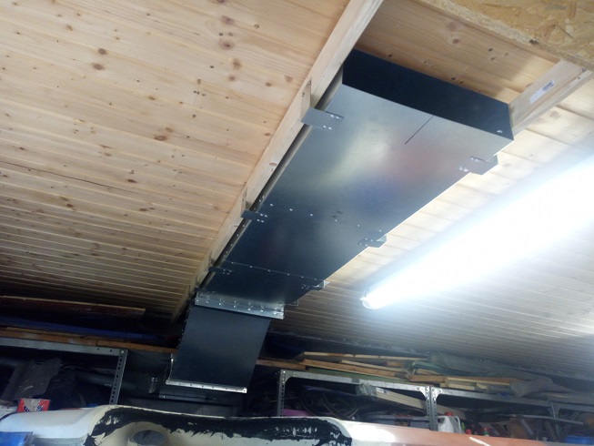 Hier ein paar Bilder vom Bau des Kanals. Filter und Lüfter sind dann später im anderen Raum an der Decke verbaut, die Abluft auch geht durch einen (Aktivkohle-)Filter.