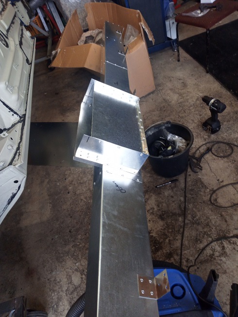 Auf der anderen Seite kommt der Lüfter (Bild 1, Dalap 250mm) zum Einsatz, davor ein Kasten mit Filtermatte. Das muss ich aber alles noch zurecht machen. Mal schauen. Bislang sind 13 Bleche 100x50cm in 0,7mm verzinktem Stahlblech verbaut und ca. 500Nieten (5mm). Wen es interessiert, der Querkanal ist ca 2,50m lang. Klar, das ist bei Weitem nicht das, was vlt eine Lackiererei vom Luftdurchsatz her nutzt, aber es ist (hoffentlich) besser als gar nix. Na ich lass mich mal überraschen. Der Lüfter wird drehzahlgeregelt und macht ganz gut Druck - etwas mehr als die Absaugung, wodurch ich mir erhoffe, dass kein zusätzlicher Dreck in die Bude kommt, wenn später mal beides läuft (Zuluft und Absaugung), sondern ein leichter Überdruck entsteht.