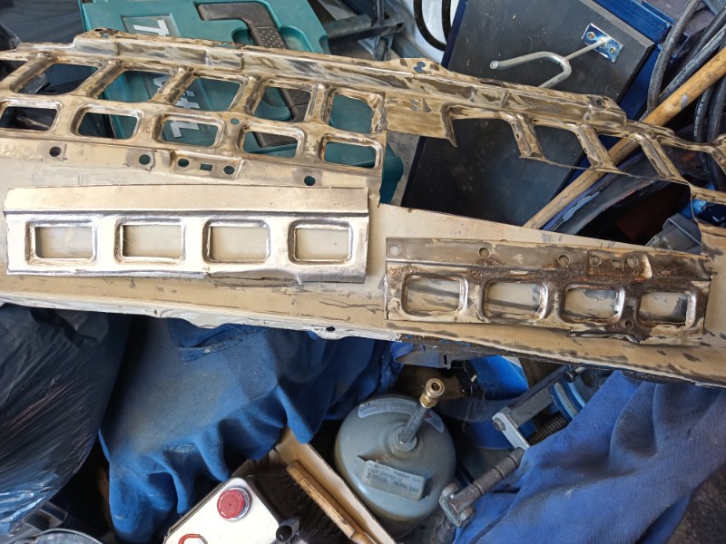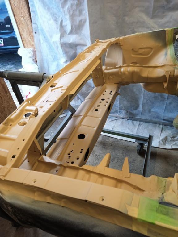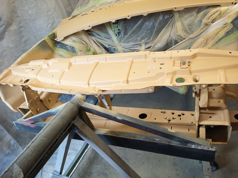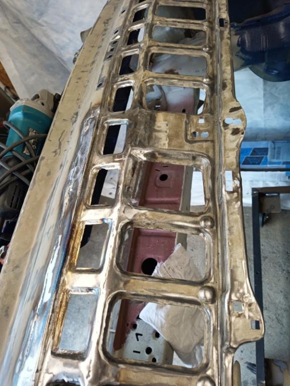 Nachdem ich nun wochenlang, mit zum Teil sehr kleinteiligem Werkzeug, die Front/den Vorderwagen gereinigt, entrostet und entlackt habe, kam die Tage erst einmal wieder Grundierung darauf. Hier und da hab ich noch schweissen müssen. Alles in Allem geht's voran.