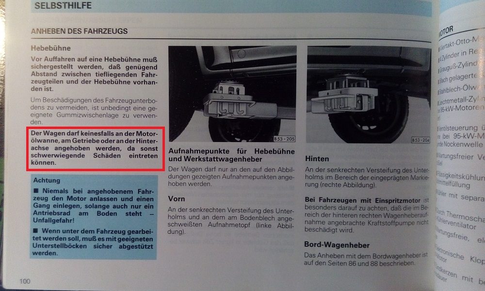 Die Betriebsanleitung nennt für hinten nur den einen Punkt am Schweller. Und an die Hinterachse soll man wohl auf gar keinen Fall gehen?!
