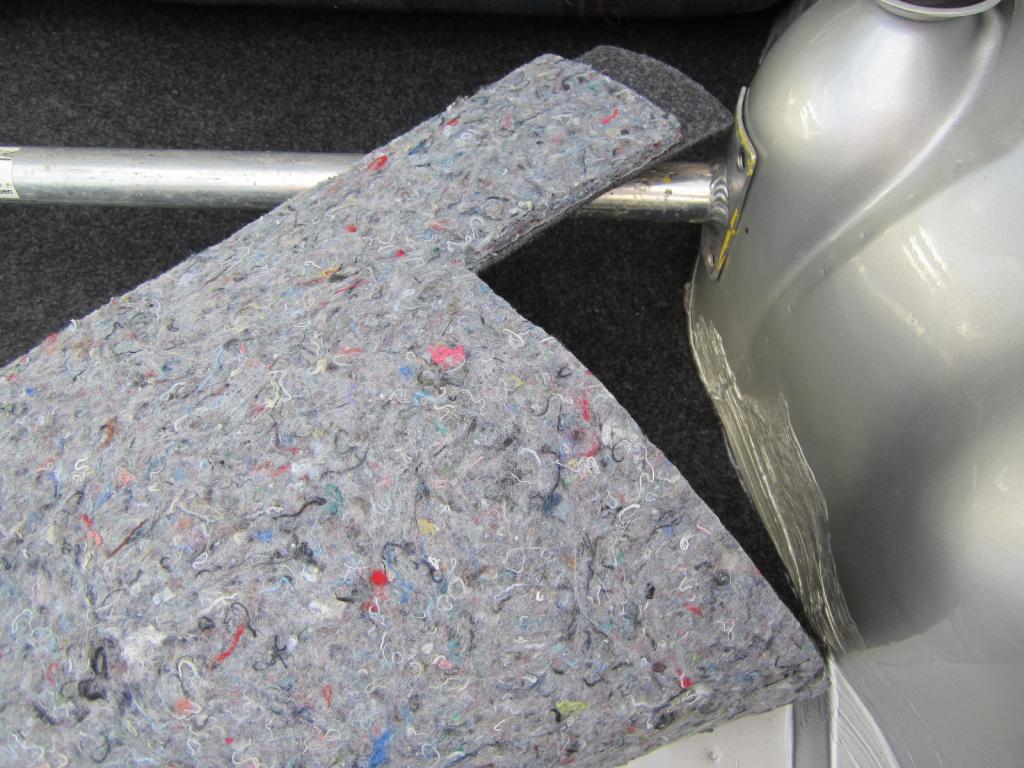 Also wurde kurzerhand, bis auf die Abänderung der Höhe am Heckblech, wie nach dem Originalem Muster der Teppich geschnitten.