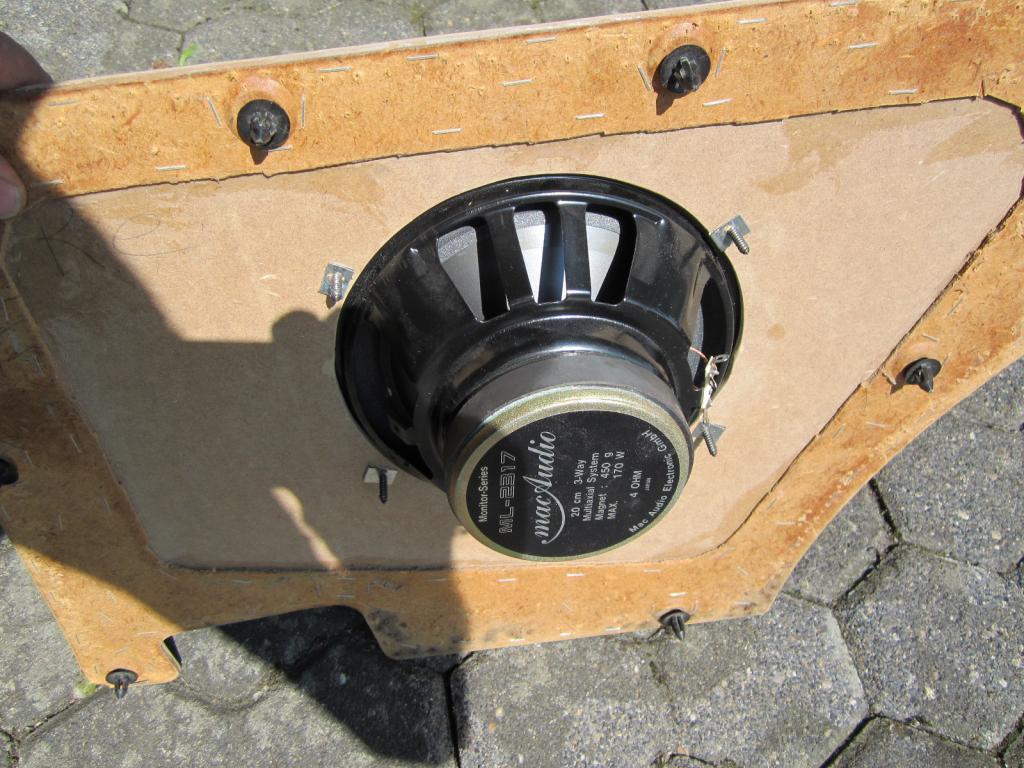 Diese möchte/ wollte und habe ich nun in die Seitenwände eingebaut. Beim Probelauf in meinem blauen Einser stellte sich nun herraus, das mir etwas Volumen für den Bass fehlt.