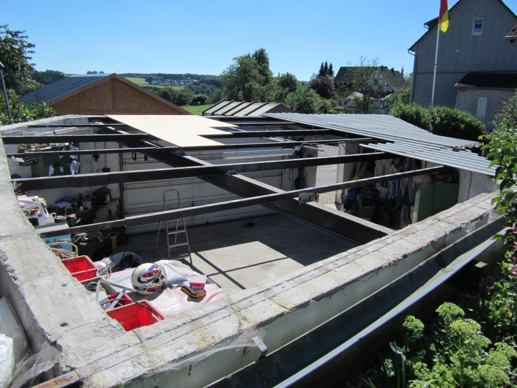 Hintergrund: Mein Garagendach habe ich vor so 16 Jahren mit Trapetzblech gedeckt. Seit dem nervt das Tropfen von Kondenswasser bei Wetterumstellungen.Es kann doch nicht sein, das die Sciroccos und alles andere, den Winter über in Planen eingehüllt in der Garage stehen.
