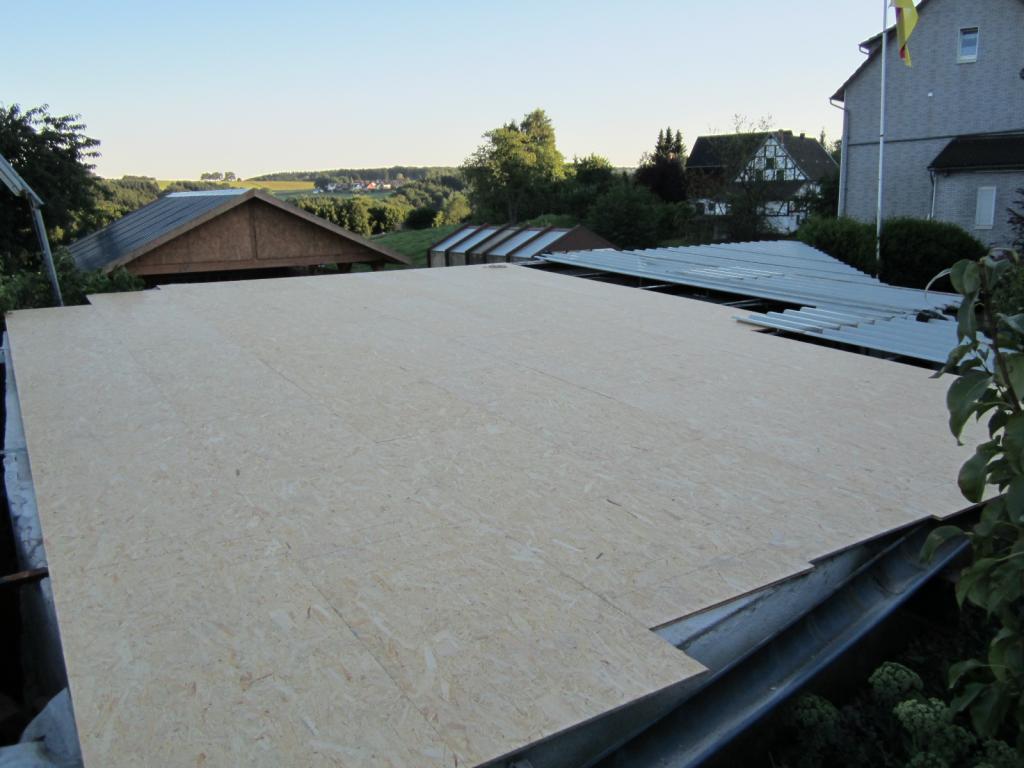 Also Dach abdecken, mit OSB-Platten neu bedecken, Difusionsoffene Folie drüber legen und zum schluß das gute alte Trapetzblech wieder auflegen.