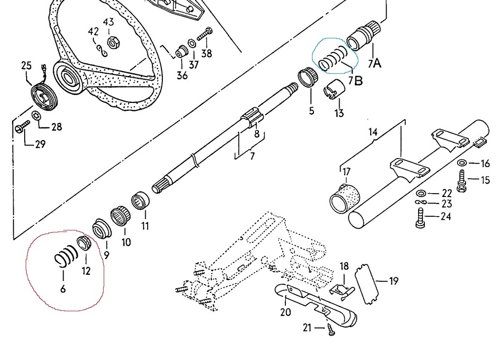 Hier im video sieht man auch prima die einzelteile. Wobei - ich will die lenksäule nicht ausbauen. Normalerweise ist die wohl mit abreisschrauben befestigt, die erst ausgebohrt werden müssen. Und dieses federblech bekommt man sicher nie wieder dran