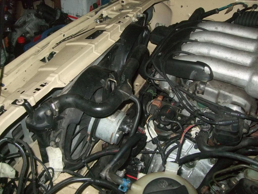 Heute hab ich den Kühler vom Seat montiert. Passt Super, da Gleiches Netzmas wie der Rocco 16V Kühler und die Anschlüsse muss ich dann auch nicht ändern.