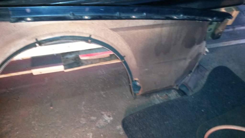 Erstaunt bin ich bisher über den recht guten Zustand des Bleches. Die Wagenheberaufnahmen sind von der braunen Pest zerfressen (wie auch nicht anders zu erwarten) und ein Loch im linken Kotflügel. MfG Erik