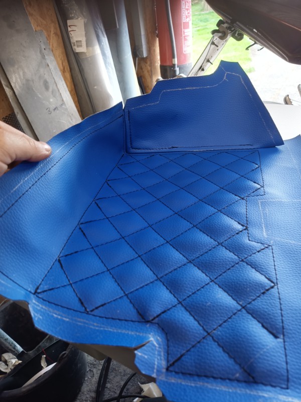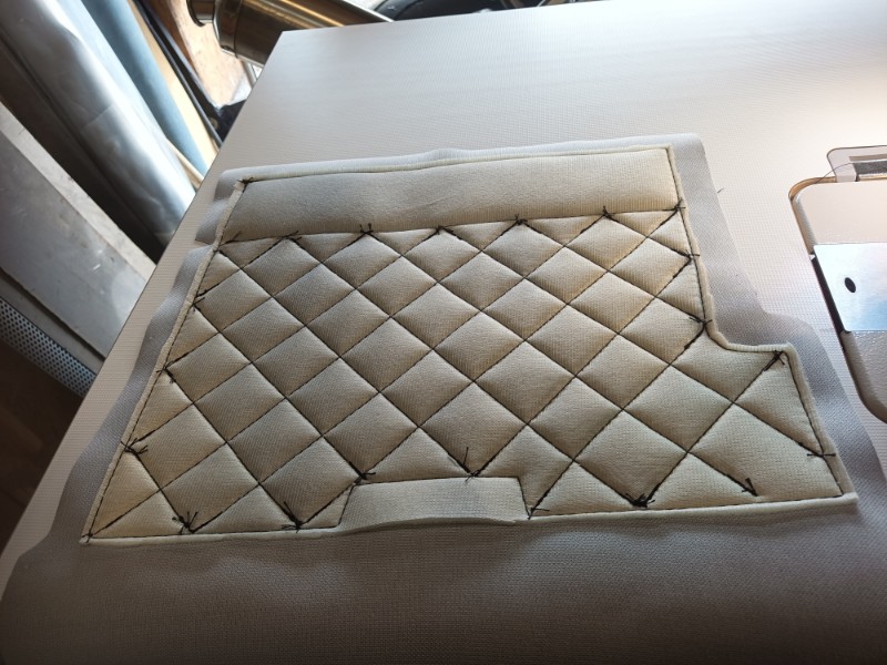 ich denke, vieles sieht man erstmal selbst, weil man es ja angefertigt hat. Ich hatte noch die Idee, die Schlitze oben zur Scheibe hin iwie abzudecken. Vlt mit irgendwelchen 3D gedruckten Teilen oder so. Mal sehen. Ansonsten habe ich mal mit einer Auskleidung fürs Handschuhfach experimentiert. Da durfte die neue Nähmaschine mal eine kleine Runde ackern. Unten ist so ein Diamantenmuster im Stoff, weil ich da rückseitig 3mm Schaumstoff aufgenäht habe. Leider ist das Teil insgesamt ein paar mm zu groß geworden. Mal sehen, ob ichs habwegs glatt bekomme. Ist ein Versuch, weil ich mit dem Kunstleder da noch ein paar andere Sachen machen will. Mal sehen.