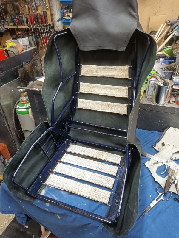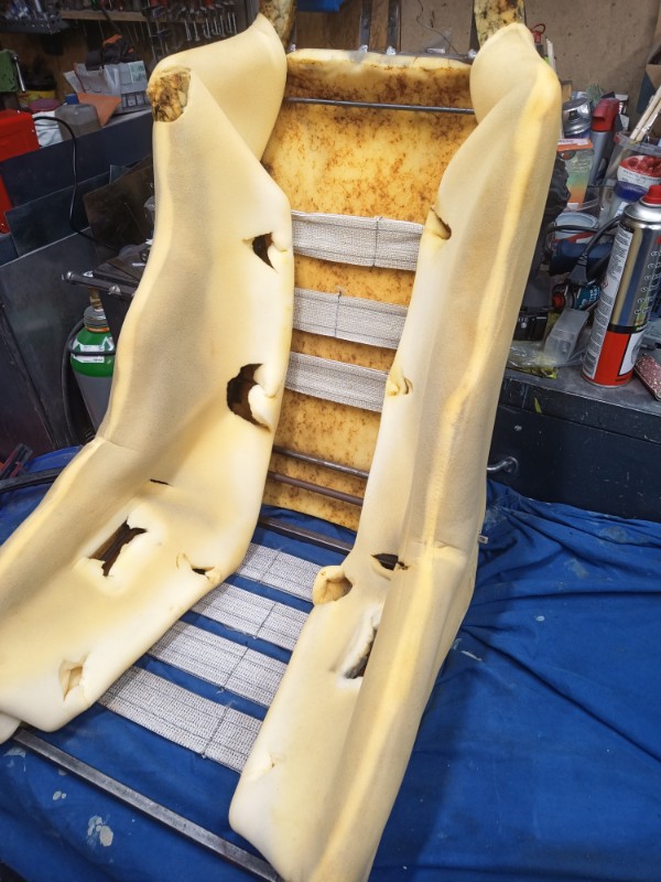 Edit: heute ging es etwas weiter. Das blaue Material ist Schaumstoff und Teil der neuen Polsterung.
