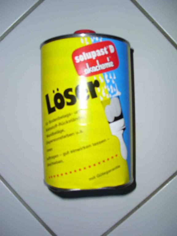 Die . Haube ausbauen, umdrehen, alten Matten grob entfernen und dann hiermit einweichen und abrubbeln.