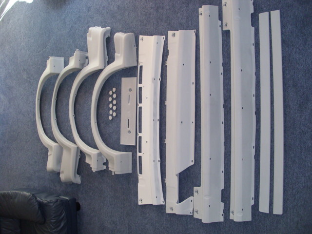 Nach ingesamt ca. 80 Stunden war von allen Verbreiterungen der Lack runter. Mein Lacker hat die Teile dann gefüllert und ich dann nochmal ca. 10 Stunden alles glatt geschliffen. Das sah dann so aus: