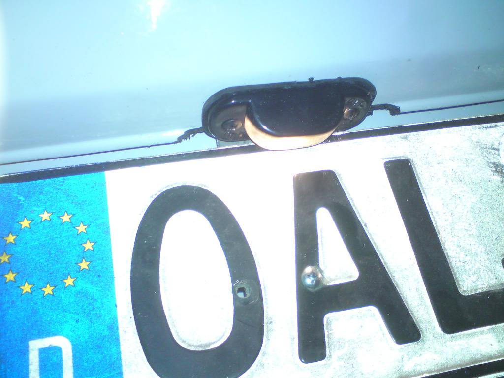 Ging wieda ein bisschen weiter. Hab mich um das hintere Kennzeichen gekümmert. Nachdem ich´s ja wegen der Heckblende nicht mehr oben befestigen kann, wanderte es unter die Stoßstange. Hab mir bei AUDI 2 neue Kennzeichenbeleuchtungen für´n 80er B3 geholt, die ja bekanntermaßen innen Scirocco passen, aber ne Gummitülle über den Leuchtensockel haben. Mit 20.47,-€ ne günstige Investition.