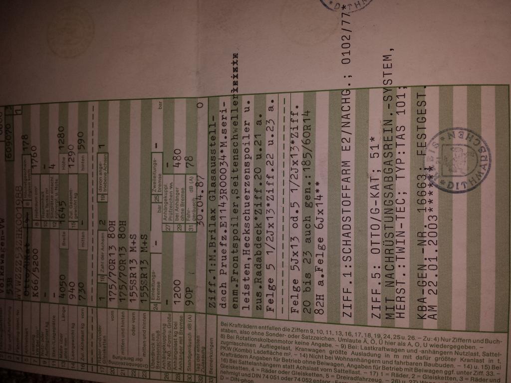 Mein wagen ist ein EX hat kat UND twintec kaltlaufregler verbaut UND eingetragen! Nur mal so wegen gibts fürn EX 2e2 nicht... steht alles eingetragen drin mit euro 2..