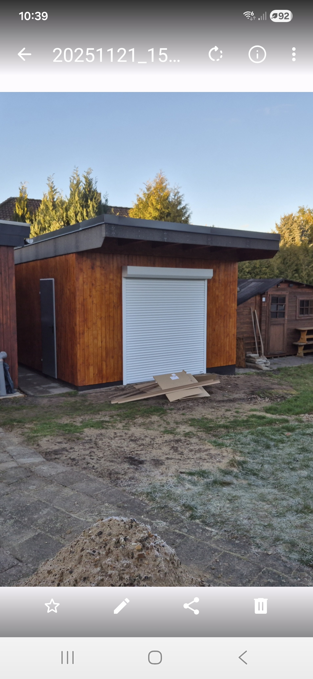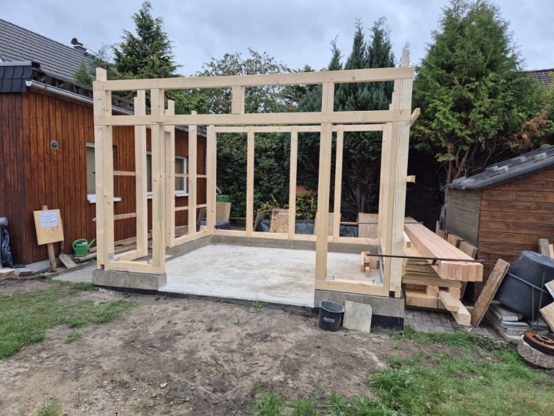 Innen ist es jetzt rundum gedämmt. Dachdämmung kommt. Elektrik und Bodenbelag fehlen dann noch. Ist das teils durch, kann ich in der ersten Werkstatt wieder Platz schaffen und es geht am Rocco weiter.