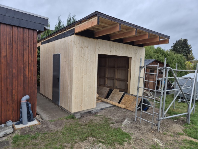 Die zweite Werkstatt nähert sich in kleinen Schritten der Nutzbarkeit. Aktueller Stand von aussen:
