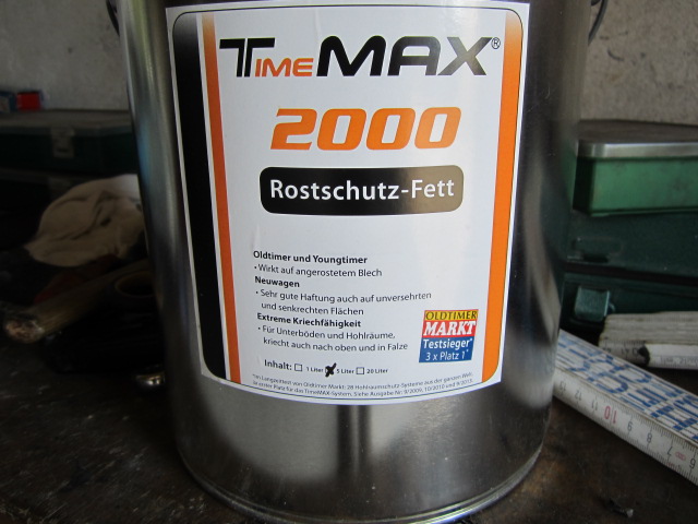 So, nach zwei Nachmittagen bei diesem schönen warmen Wetter in der noch etwas wärmeren Garage ist die Rohkarosse nun mit gesamt 7 Littern Hohlraum versiegelt.