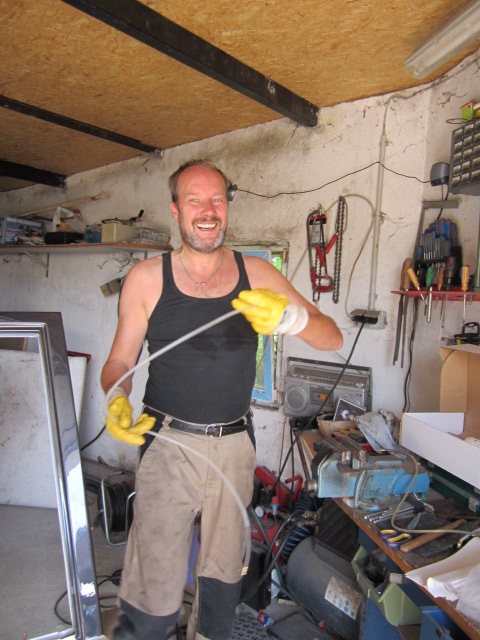 Mit zwei Bildern kann ich dir gerne dienen. Die hatte meine Frau mal eben bei einer Kontrolle ob ich noch Lebe gemacht. Aber nun bitte keine Lästerattaken ala " ist der Typ blöd ....." oder " hast du sie noch alle, das heiße Zeug so zu verarbeite " oder .....