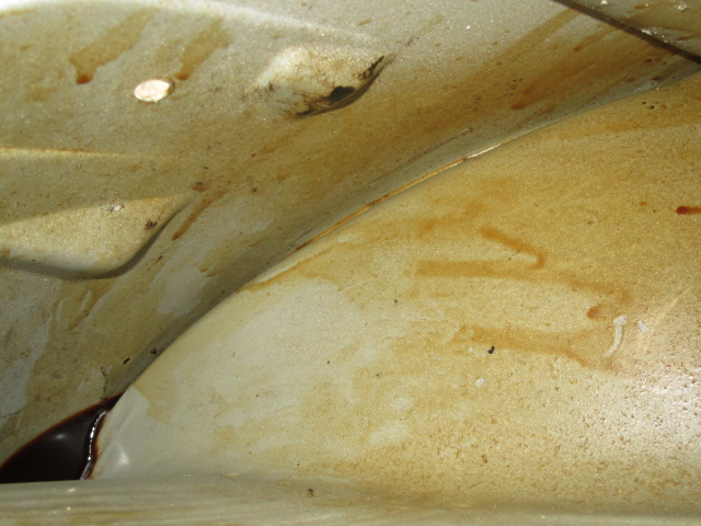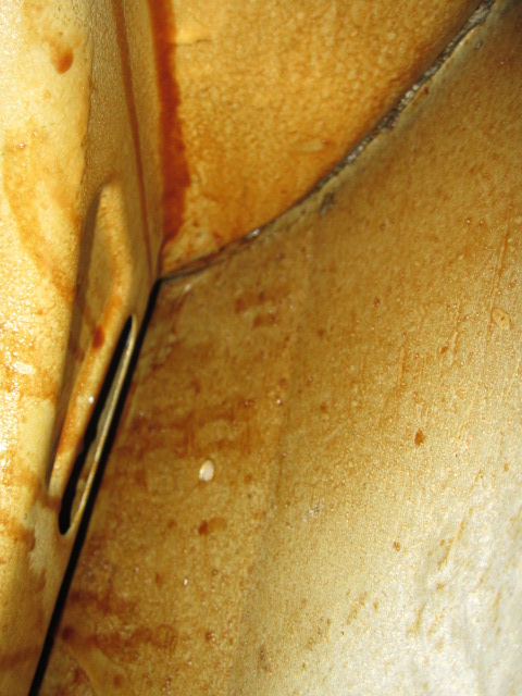 Und ninten in den Ecken stand noch Wasser vom schleifen der Karosse beim x ten mal Lackieren. Der Kofferraum sah schon nach schwerer Sauerei aus, aber das - neee geht gar nicht. Nicht vorzustellen was passiert währe, wenn ich da das heiße Zeug reinbelasen hätte.