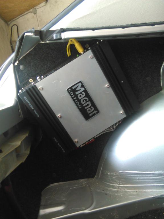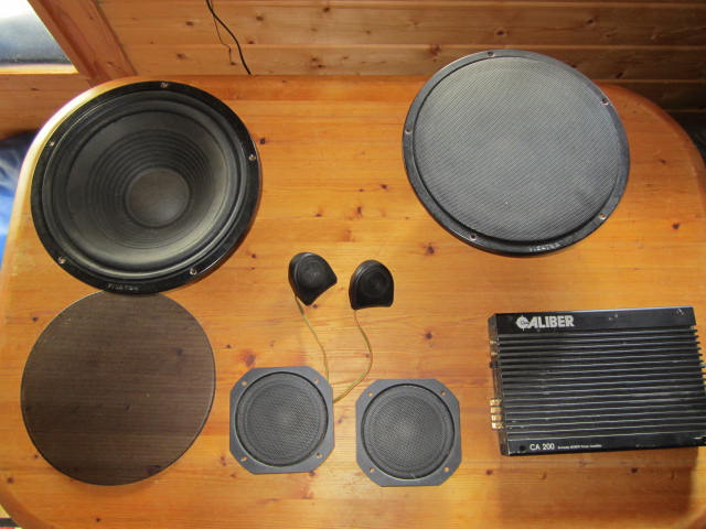 Diese Lautsprecher hatte ich mit der Endstufe schon im roten Rieger verbaut ( dort aber ohne Rücksitzbank in einer schrägen Holzplatte zwischen dem Ü-Bügel ). Ich denke, das dann vorne noch ein kleines zwei Wege System verbaut wird.