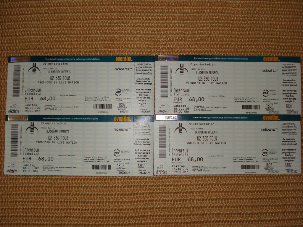 da mir Ebay in dieser Richtung ein bisl zu unsicher ist, würde ich hier meine 4 Tickets oder wahlweise 2x2 Tickets für das U2 Konzert in Berlin am 17.07.09 anbieten.