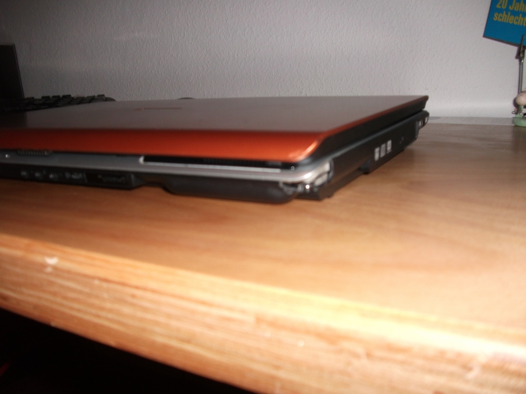 Mainboard und Deckel wurden mal auf Garantie getauscht. Rechts unten ist leider ein Stück vom Gehäuse abgebrochen und am Netzteil musste ich das Kabel etwas isolieren. Ist schon ewig so und hat keinen Einfluss auf die Funktionalität.