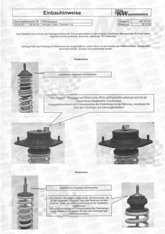 Gewindefahrwerk Montage Hinterachse Hilfe