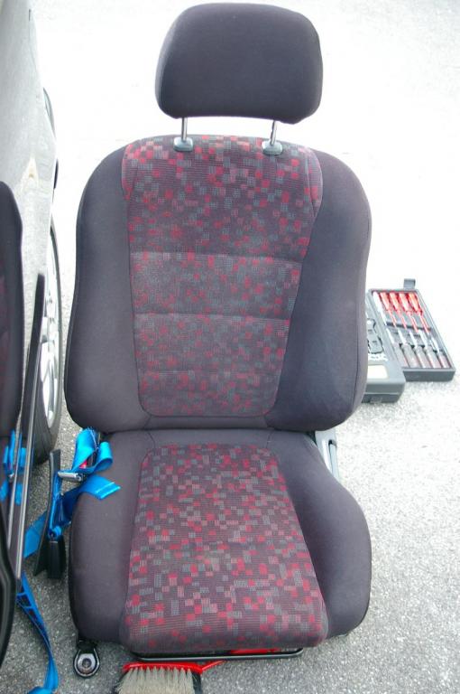 Die Innenausstattung vom G6 hat schwarze Stoffsitze und rot karierte Inlays. Diese Woche war diese Innenausstattung beim Aufbereiter, so daß wir (das heißt Lars) sie heute einbauen konnten.
