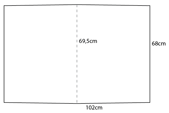 Breite 102cm, Länge an den Außenseiten 68cm und in der Mitte 69,5cm
