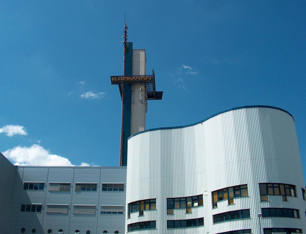 Das VW-Logo ist am Karmann-Turm angebracht worden.
