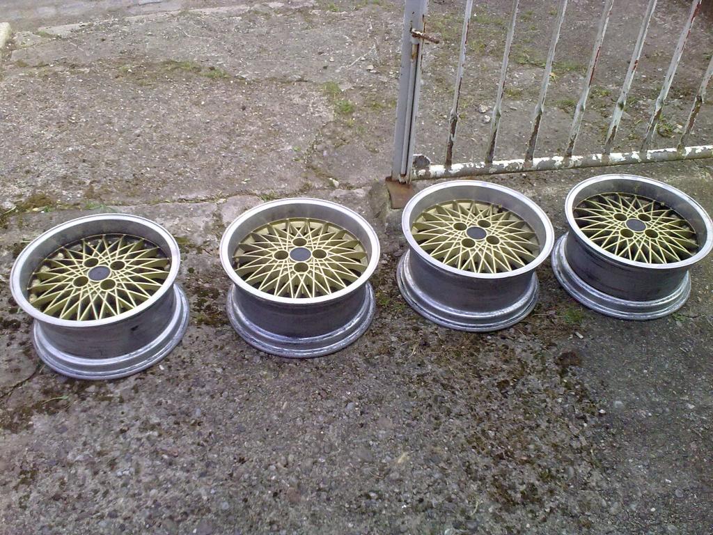 Einen Satz RH-Alufelgen in o.g. Größe, Kreuzspeichendesign, Zustand ist ok, mehr aber auch nicht (wir wollen ja mal bei der Wahrheit bleiben...).