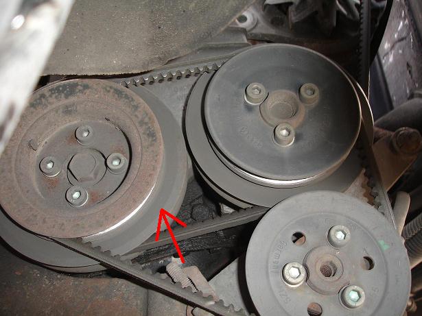 Suche die Riemenscheibe vom PL/KR (die die auf der Kurbelwelle sitzt)