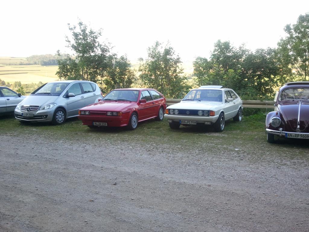 Aber eines vorweg, Claas (alias Friesenpöler) hat tasächlich Wort gehalten und ist mit einem Scirocco, inklusive Frau und Kind (und Winterbereifung bei fast 30°!!!) zum Treffen gekommen. Sogar eine Tankstelle hat er gefunden, war allerdings irritiert, das man sich dan anstellen muß bis eine Säule frei wurde