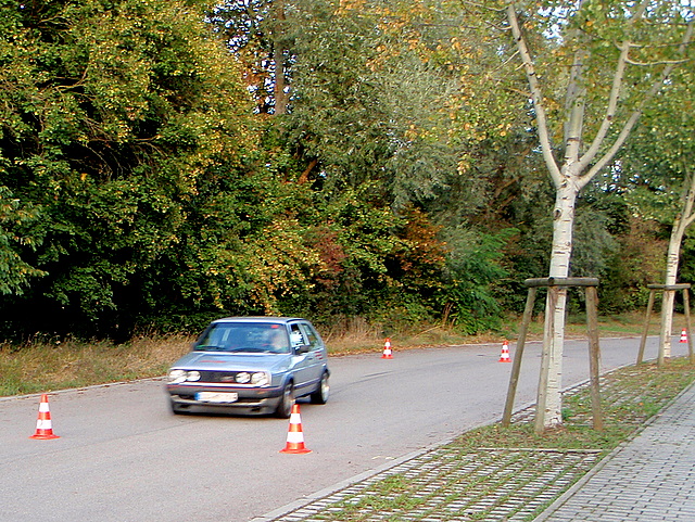 Es zählt: möglichst ohne Quietschen, verbremsen, korrigieren....eine saubere Linie um die Hütchen zu fahren.
