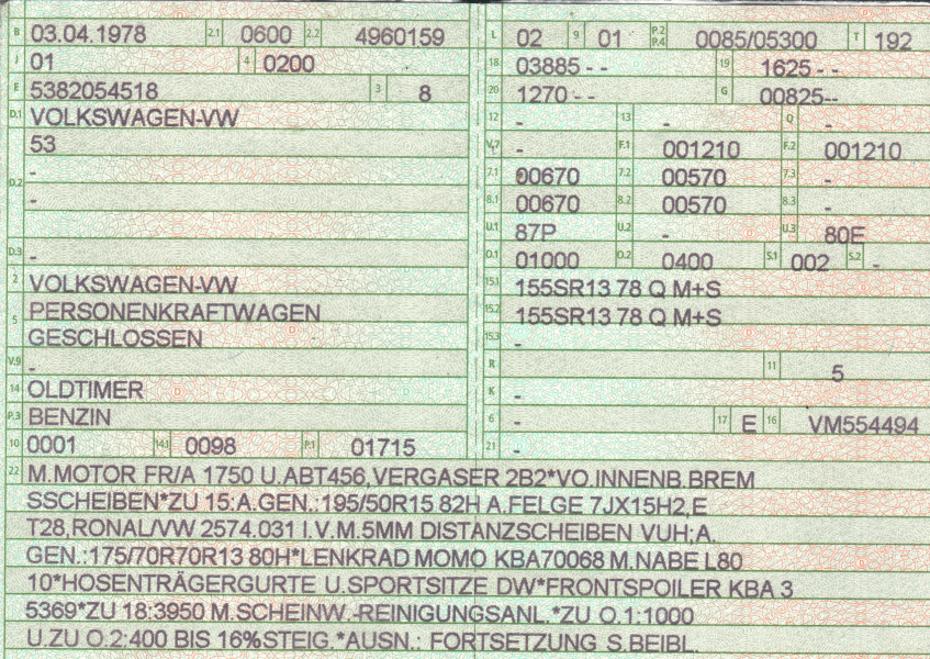 Abt FR-Motor. Er hat 1715ccm Hubraum, ist eingetragen mit 85kW/116PS. Hubraumerweiterung m.W. mit der Kurbelwelle aus dem Iltis. Läuft obenrum m.E. besser als ein EG-Motor. Hab den Wagen vor einem Jahr so gekauft, daher weiss ich nicht, was für eine Eintragung notwendig wäre. Fzg-Schein habe ich eingescannt und angehängt.