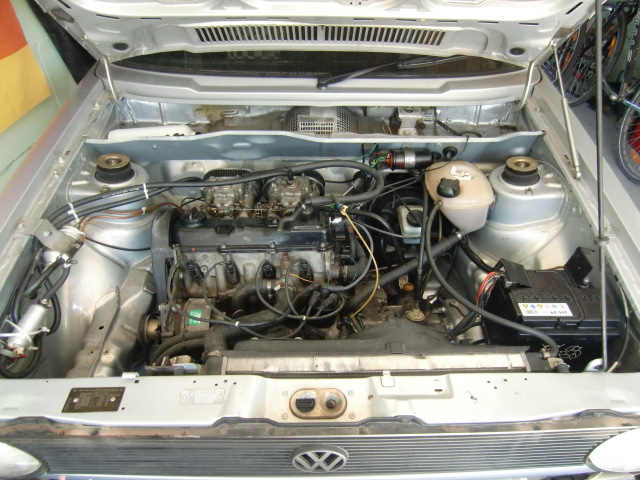 Der Wagen wurde vom Vorbesitzer schonmal restauriert, allerdings nicht 100%ig. Der Golf wurde komplett auf GTI Technik umgebaut mit Achsen, Stabis, Bremse, und einem 1,8L Motor mit 40er Weber Doppelvergaser und K&N Luftfilter, sowie einem 5Gang Getriebe.