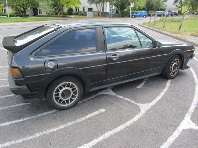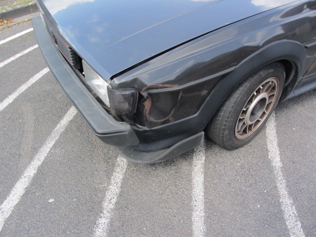 Der Wagen hatte einen leichten Unfall vorne links wie auf den Bildern zu sehen. Bei einer Reparatur wären Kotflügel und Türe sowie der Schlossträger und das Blech hinter der Stoßstange zu erneuern. Am Träger ist nichts dran. Die Haube ist neu drauf von einem GTII in grau Metallic. Man sieht den Unterschied kaum zu graphit aber ich wollte es erwähnt haben.