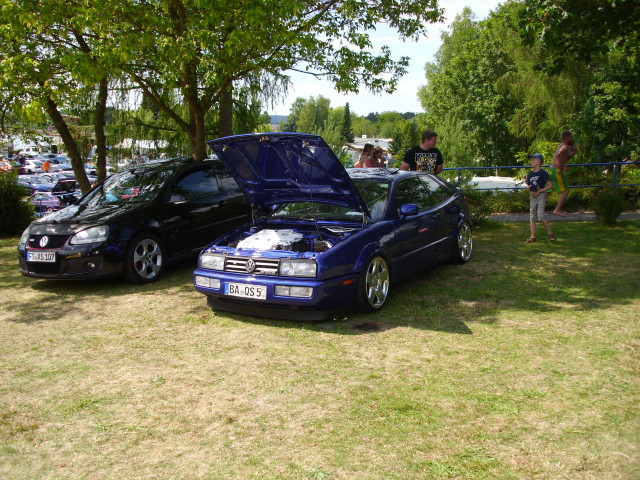 Cooler Campingplatz, bei schönem Wetter wie heute, mit Bademöglichkeit im Bergsee, auf dem Gelände gibt es eine lange Wasserrutsche auch für Kinder geeignet. Ca. 80 Corrados auf dem Platz, 60 waren bei der Ausfahrt dabei. Hat Spaß gemacht.