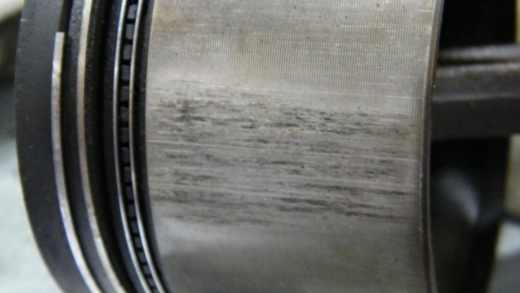 Die Zylinderwände haben leichte Riefen, 90° versetzt zur Bolzenachse. Die Kolben sehen hier noch etwas stärker mitgenommen aus, sodass ich diese eigentlich nicht mehr einbauen möchte.