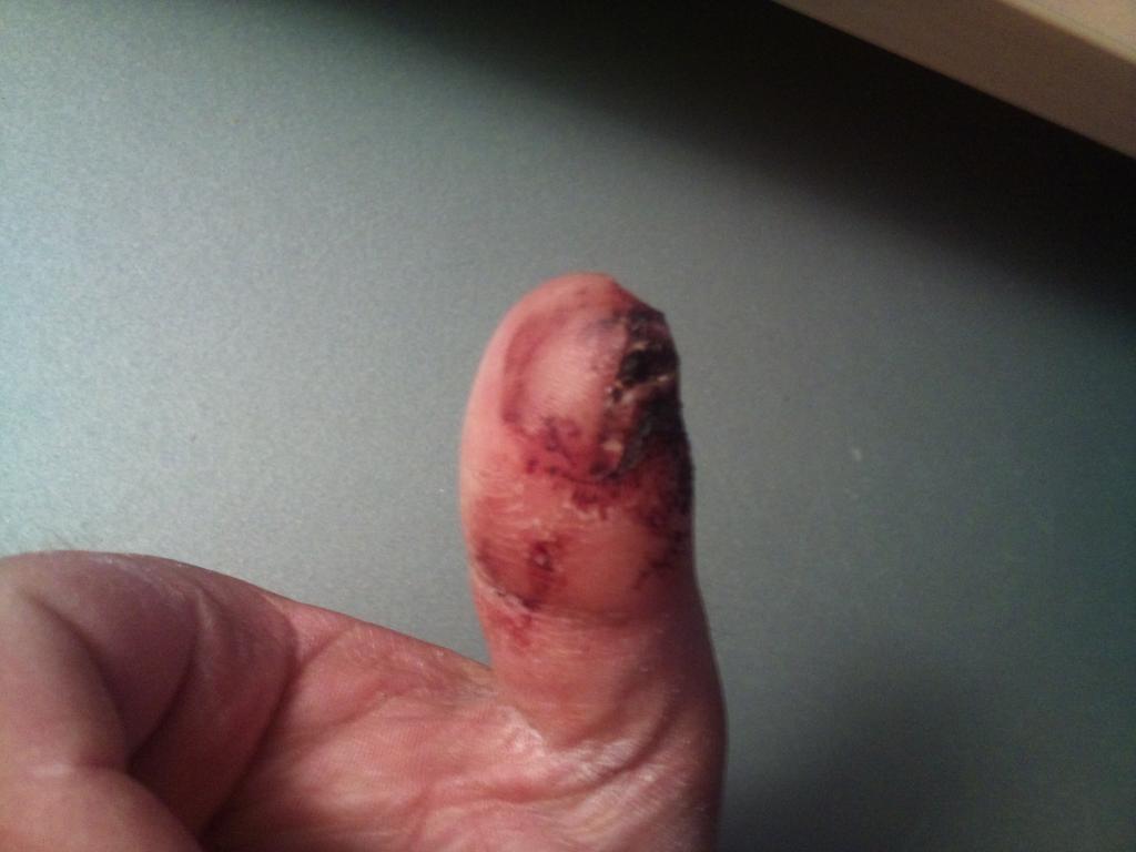 Den Finger seiner Wahl so positionieren dass das Türscharnier, wenn die Tür zu schlägt, direkt