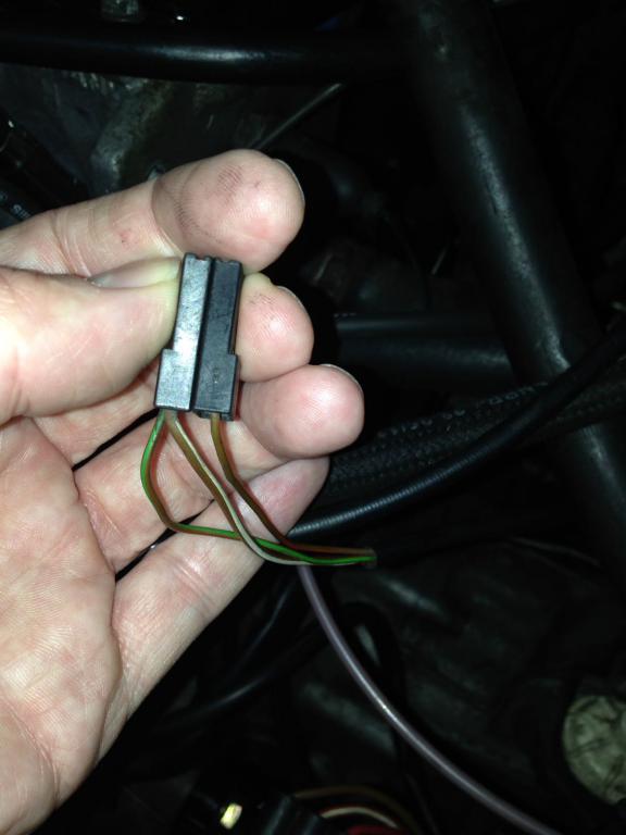 Die beiden Stecker kommen an den unteren Themperaturfühler der am Kühlwasserflansch vorn am Kopf sitzt.