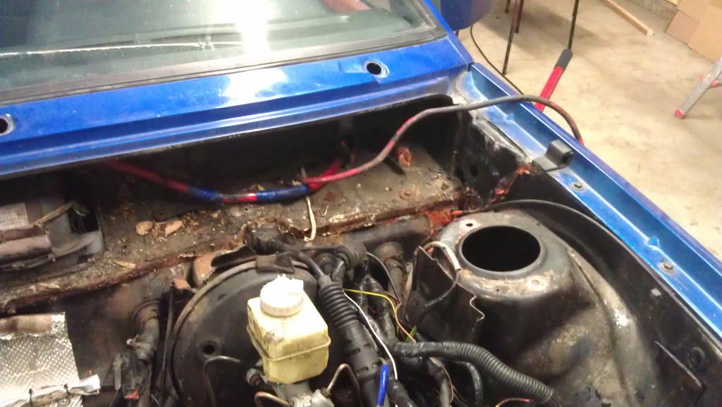...und mit Beseitigung erster Roststellen, hier am Wasserfangkasten, Verschluß nicht mehr benötigter Karosseriedurchbrüche und so.