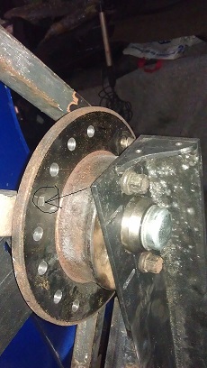 Hinten war der Platz etwas eingeschränkt, daher musste ich dort etwas platzsparender bauen. Ausserdem sollte man den Wagen natürlich in Position fixieren können. Mittels alter Bremsscheibe und Achsstummel alles kein Problem.