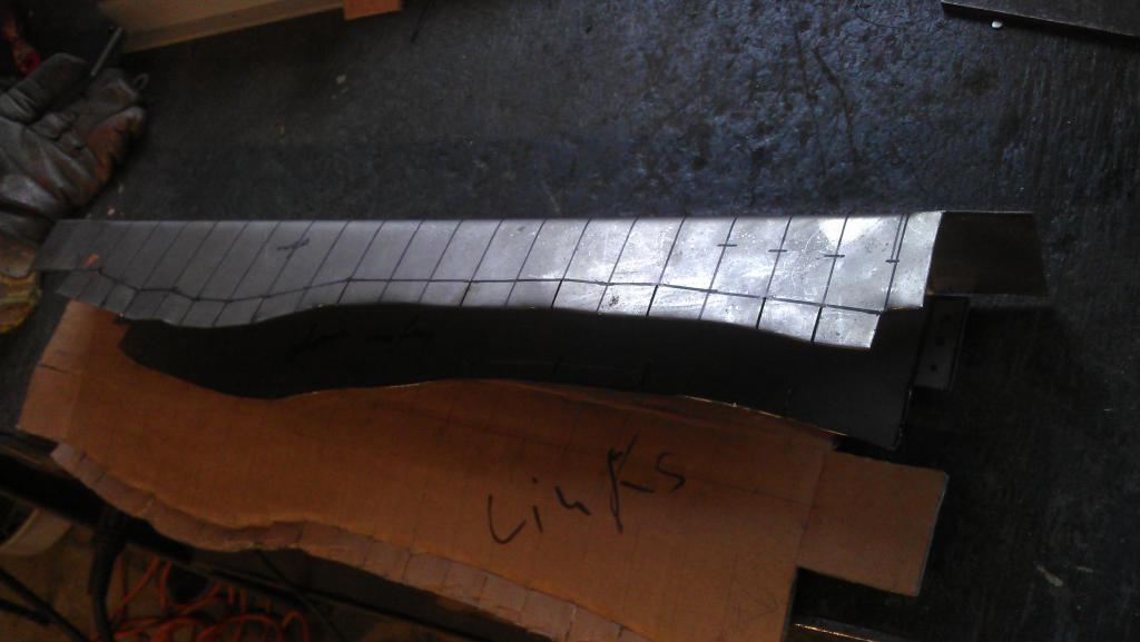 Bisserl über die Belastungsrichtungen nachgedacht, Ergebnis war ein kleines Innenleben für den unteren Teil der Strebe. Hier nun nach innen zum Radlauf hin, quasi nochmal ne Abstützung für den Halbmond und als Schutz vor Schmutz und Nässe.