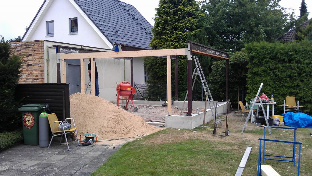Erst einmal die Ausgangsbasis: Zunächst musste ich mir erstmal eine Werkstatt bauen - Hallen zur Miete findet man hier nicht und ich habe nette Nachbarn/Vermieter. In diesem Rahmen noch einmal herzlichen Dank gesagt für die Möglichkeit und Unterstützung an alle Beteiligten.