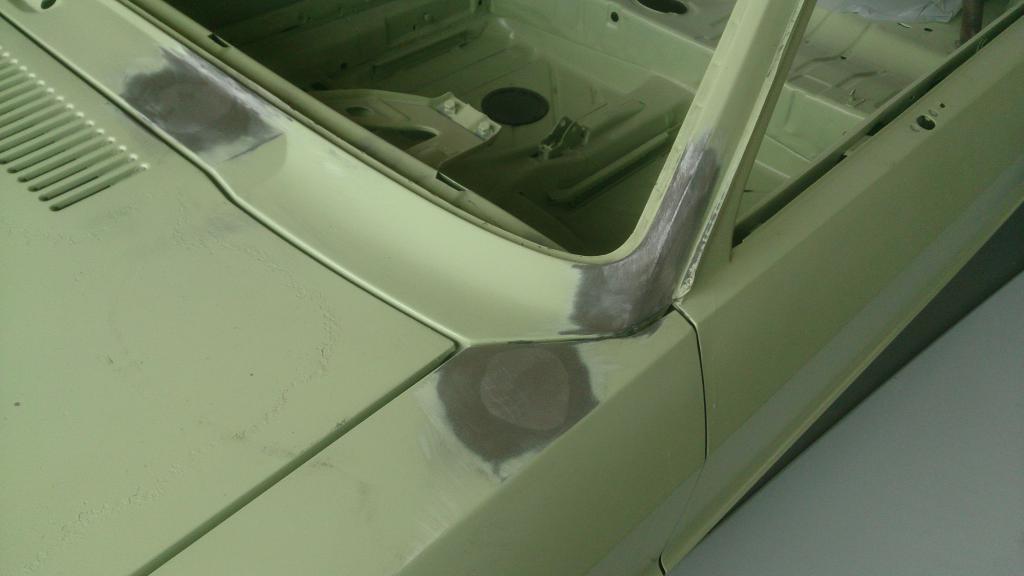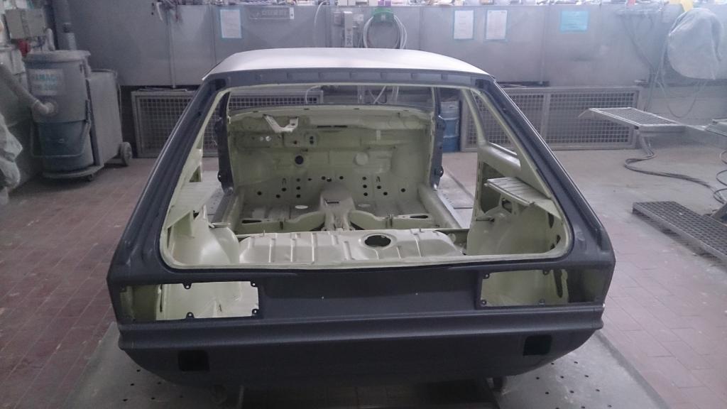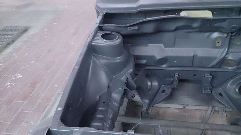 als die Schweißarbeiten erledigt waren, ging die Karosserie erneut zum Sandstrahlen mit sofortigen grundieren.