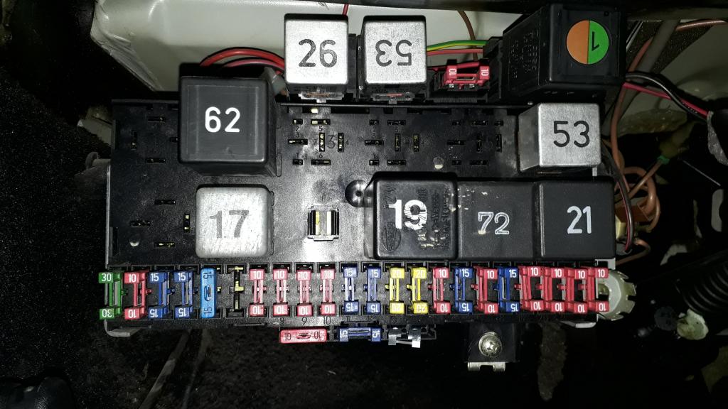 es ist das Relais oben rechts (das rot/grüne mit der umgekehrten 1 drauf). Einfach rausziehen. Damit ist das Leerlauregelventil stillgelegt bzw. dauerhaft auf "aus". Du kannst es manuell wieder zuschalten, auch ohne das Relais. Dazu musst Du nur ein Kabel legen.