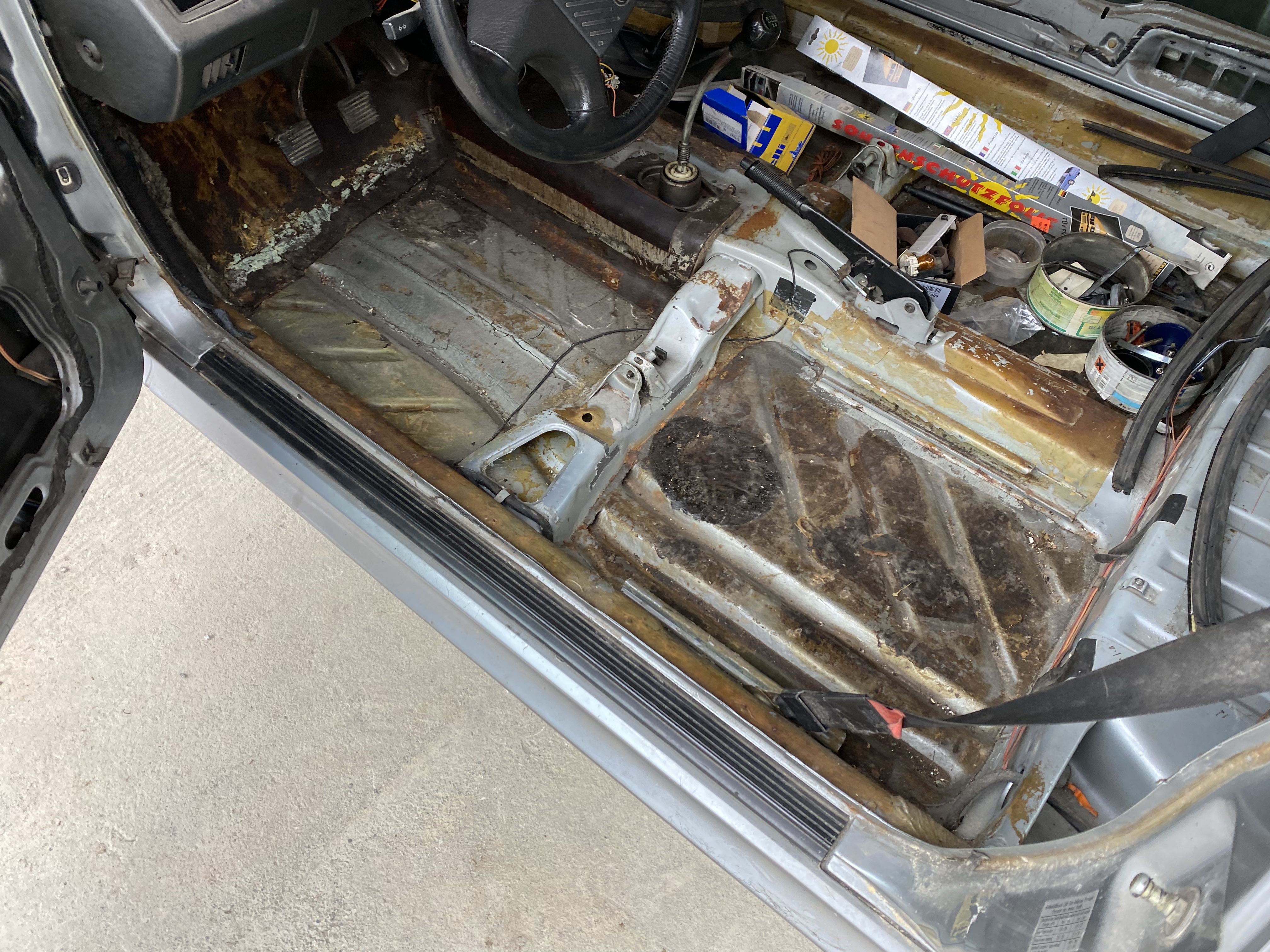Rost, Rost, Rost …. Tank Rost…Motorhaube, Domlager, Radläufe, Unterboden, und vieles vieles mehr sind der langen Standzeit ( fast 10 Jahre im Freien) zum Opfer gefallen.