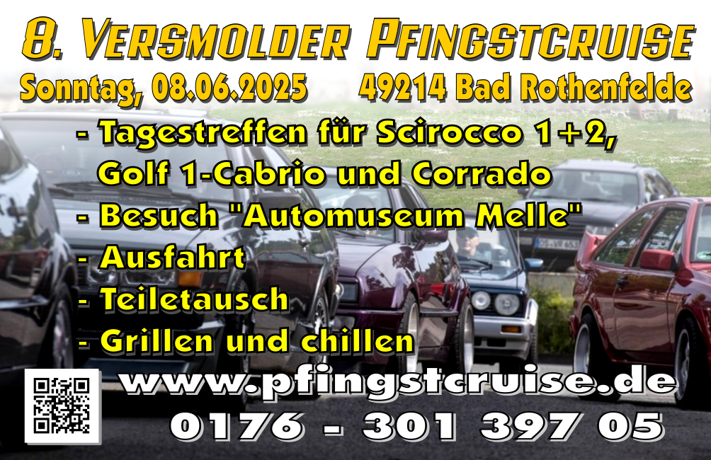 ich freue mich sehr, euch auch 2025 zum mitlerweile 8. Versmolder Pfingstcruise einladen zu dürfen !